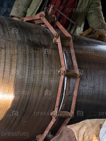 Стыковка труб большого диаметра между собой с помощью цепи центратора