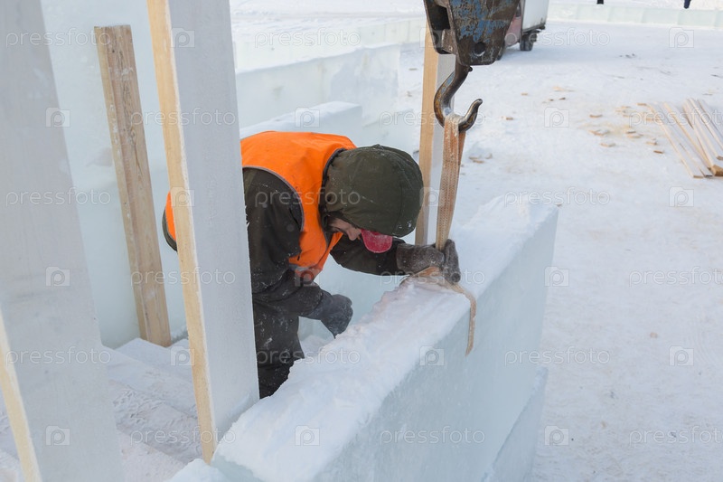 Стропальщик в оранжевой каске на месте установки