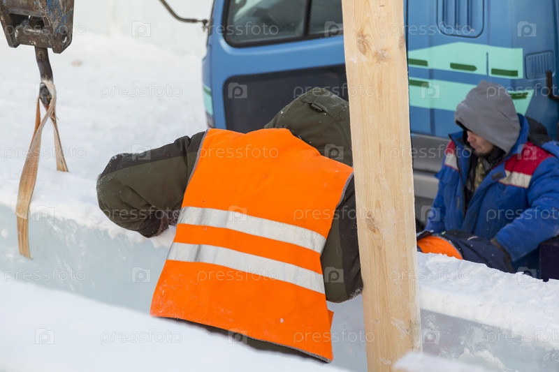Рабочий по установке ледяной панели