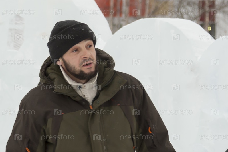 Портрет слесаря в зеленой куртке
