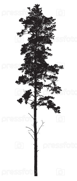 Силуэт дерева на белом фоне, реалистичная иллюстрация сосны