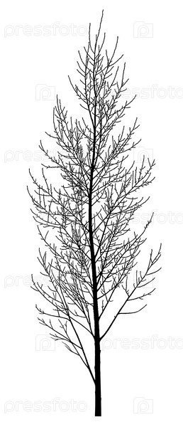 Силуэт дерева на белом фоне, реалистичная иллюстрация тополя