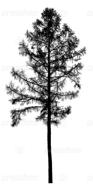 Силуэт дерева на белом фоне, реалистичная иллюстрация лиственницы