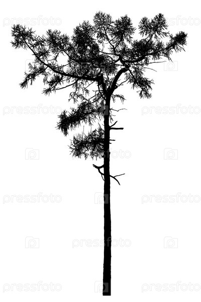 Силуэт дерева на белом фоне, реалистичная иллюстрация лиственницы