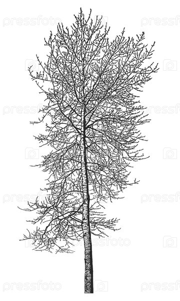 Силуэт дерева на белом фоне, реалистичная иллюстрация осины