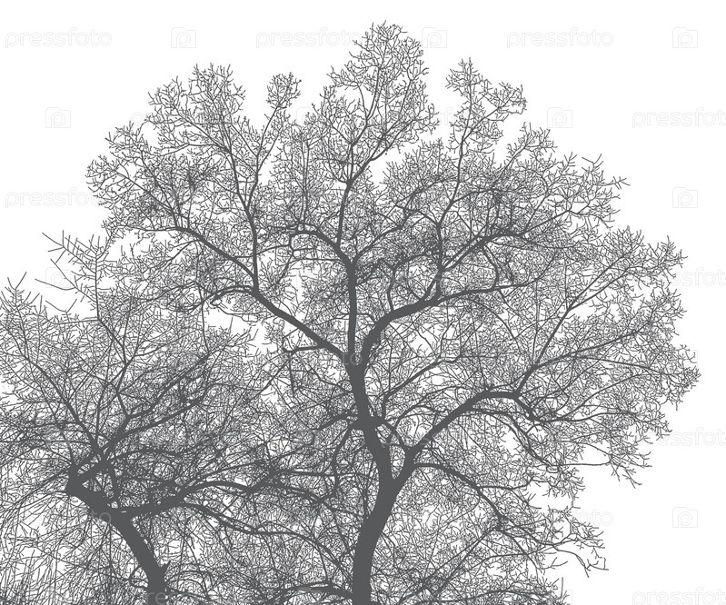 Силуэт ветвей дерева на белом фоне, ветки вяза