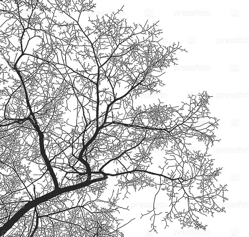Силуэт ветвей дерева на белом фоне, ветки вяза
