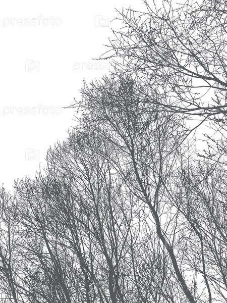 Силуэт деревьев и ветвей ивы на белом фоне