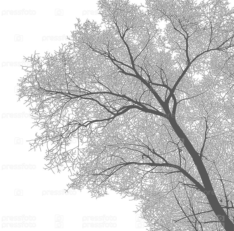 Силуэт дерева и ветвей старой ивы на белом фоне