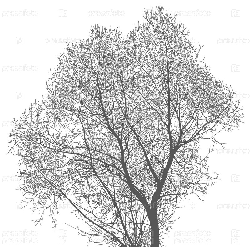 Силуэт дерева и ветвей старой ивы на белом фоне