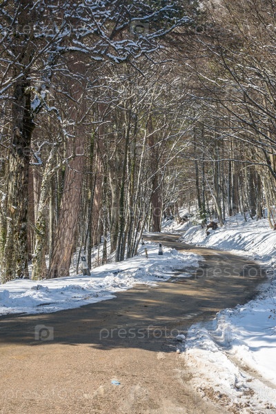 Дорога со снегом на гору Ай-Петри после весенней метели. Крым