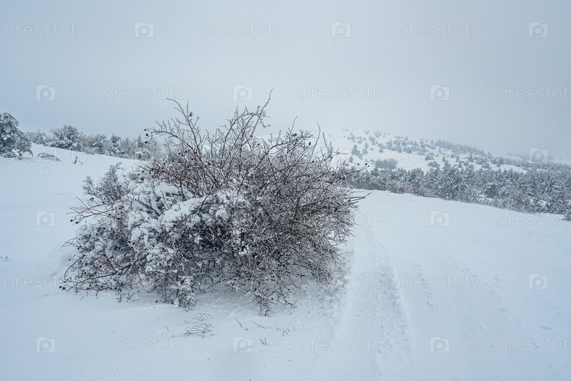 Заснеженный куст на горе Ай-Петри после метели. Крым