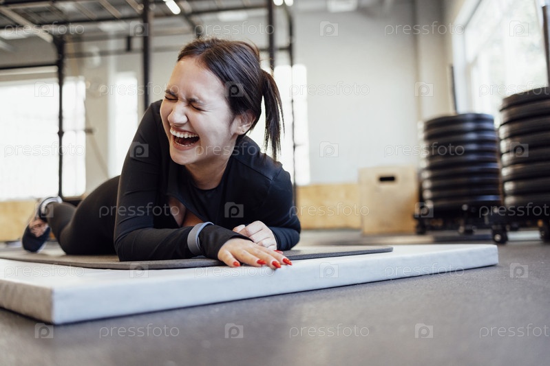 Молодая красивая женщина растягивается и разминается перед тренировкой в фитнес-зале