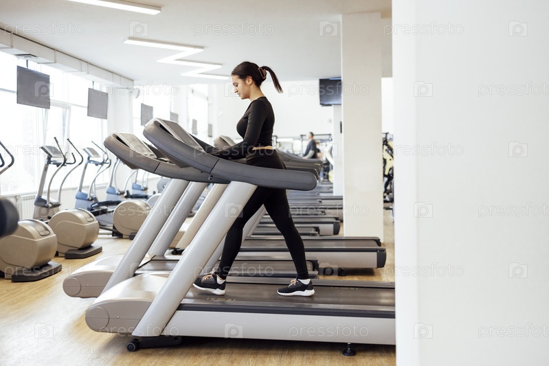 Привлекательная молодая спортивная(ый) женщина, работающая в тренажерном зале