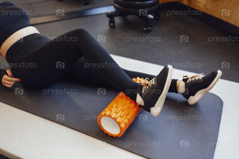 Крупным планом массажный ролик для массажа тела. Спортивное снаряжение для йоги и пилатеса