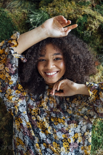 Мода и красота снимают очаровательную девушку смешанной расы в длинном платье