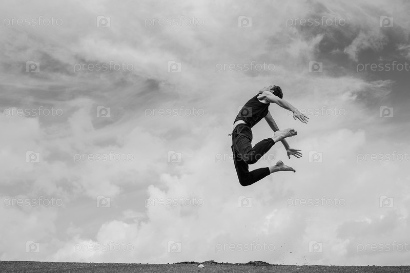 Человек прыгает в воздухе
