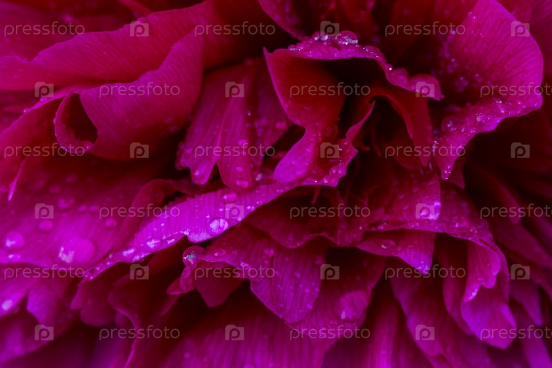 Розовые блестящие капли дождя на лепестке пиона. Нежный воздушный художественный образ с мягким фокусом