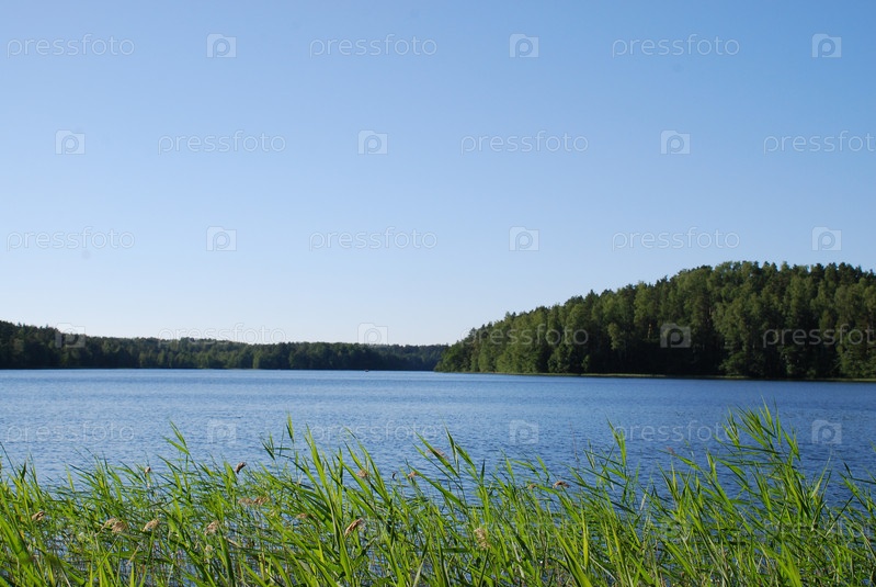Голубая вода и камыши в озере