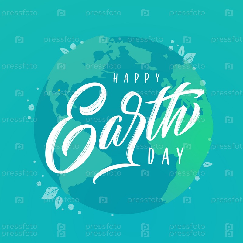 С Днем Земли рукописные надписи с земным шаром на синем фоне. Векторный дизайн счастливого Дня Земли для поздравительных открыток и плакатов. Празднование шаблона дизайна. Векторная иллюстрация