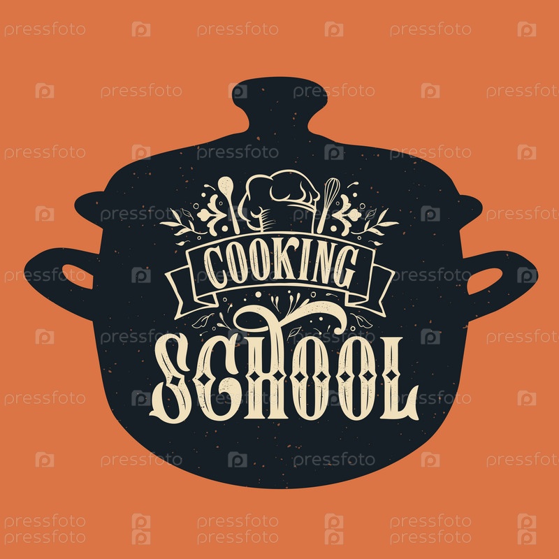 Векторный дизайн кулинарной школы для поздравительных открыток и плакатов. Кулинарная школа рукописного письма. Празднование шаблона дизайна. Векторная иллюстрация