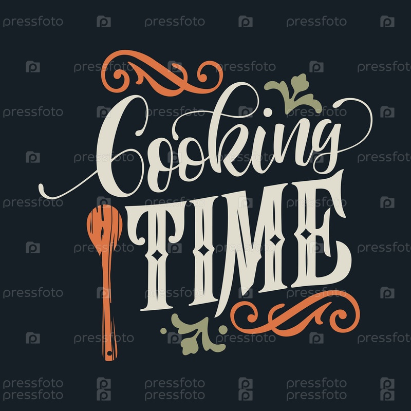 Векторальный дизайн типографии Cooking Time для поздравительных открыток и плакатов. Время приготовления рукописных надписей. Празднование шаблона дизайна. Векторная иллюстрация