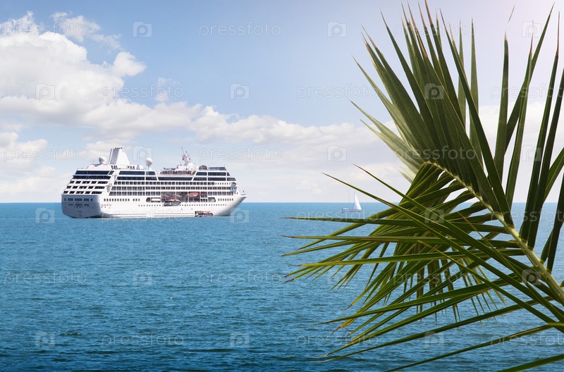 Ветка пальмы на фоне морского пейзажа