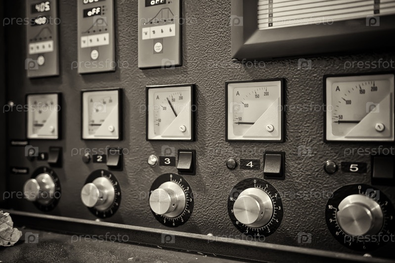 Панель управления локальной термической обработкой сварных соединений с датчиками температуры и амперметрами. Сепия
