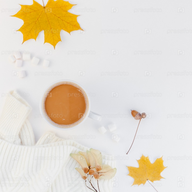 Уютный белый теплый свитер и чашка кофе Осеннее настроение