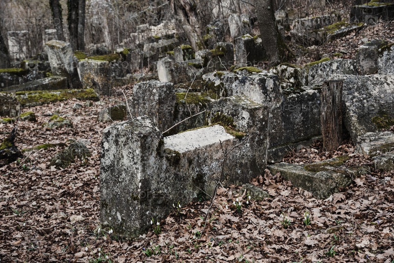 Надгробия на караимском древнем кладбище Балта-Тиймез. Бахчисарай, Крым