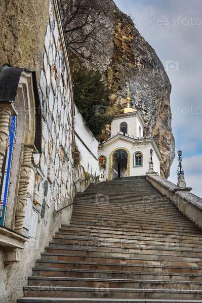 Ступени, ведущие к церкви Успенского пещерного монастыря в Бахчисарае. Крым