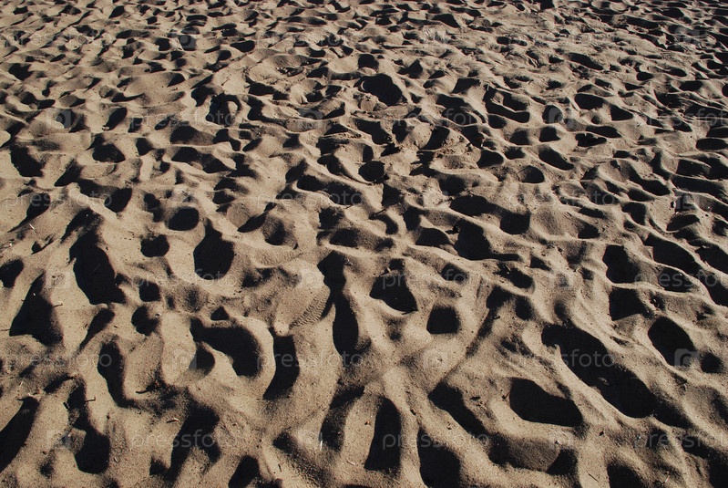 Пляжный песок с вмятинами от ног