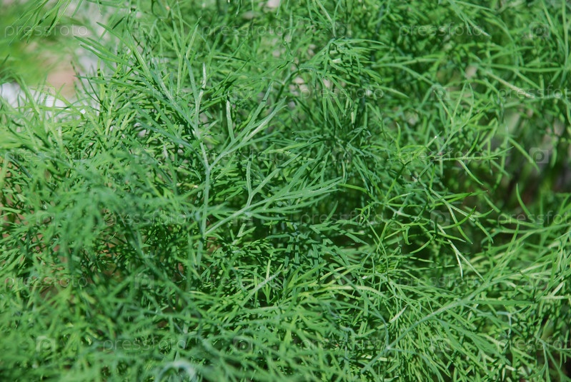 Зеленые побеги укропа в саду