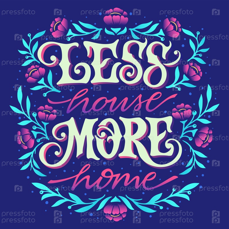 Меньше дома больше домашнего векторного текста. Каллиграфические надписи ручной работы. Декоративные надписи для украшения интерьера