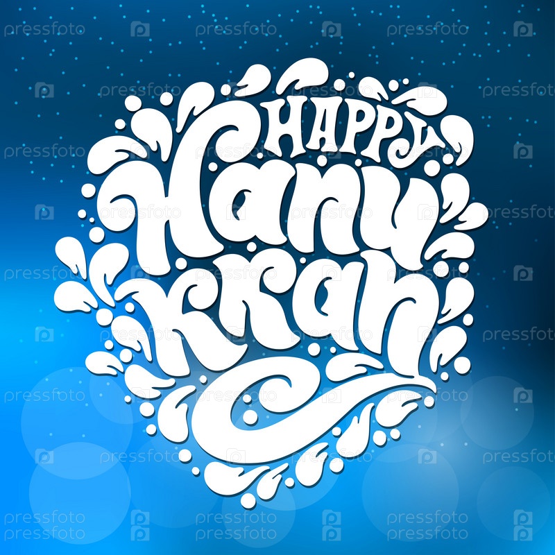 Векторная иллюстрация. Счастливый векторный дизайн типографии Хануки для поздравительных открыток и празднования шаблона дизайна плаката. Ханука красивая надпись