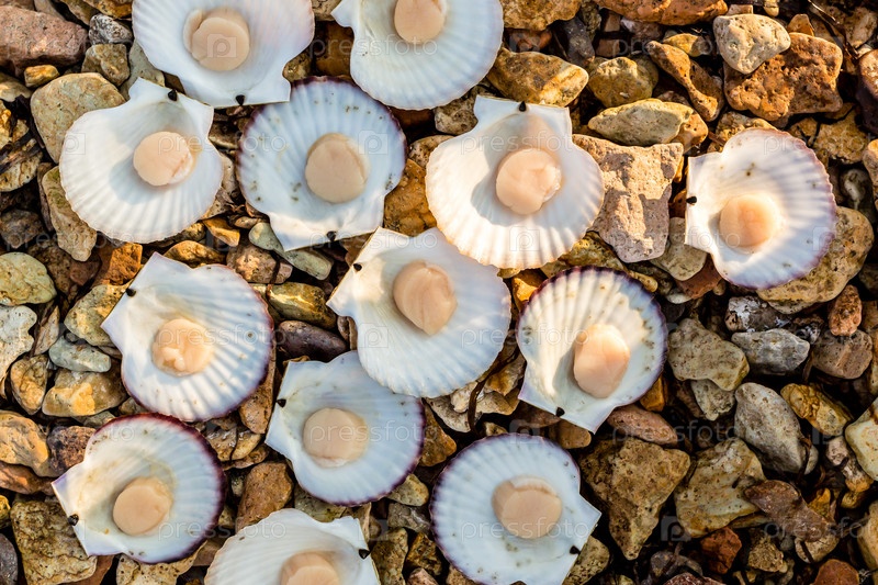 Живые японские гребцы (Chlamys nipponensis) на побережье Японского моря, Тихий океан
