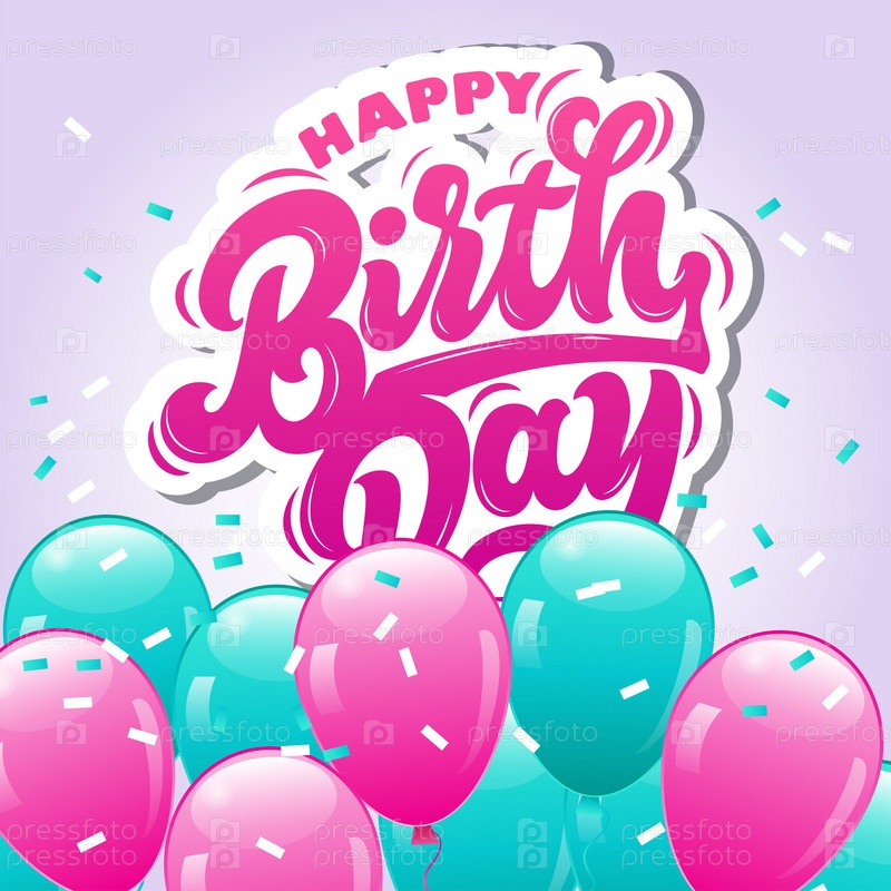 Векторная иллюстрация. С днем рождения тебя типографский векторный дизайн для поздравительных открыток и плакатов с воздушным шаром, конфетти, тортом, шаблоном дизайна для празднования дня рождения