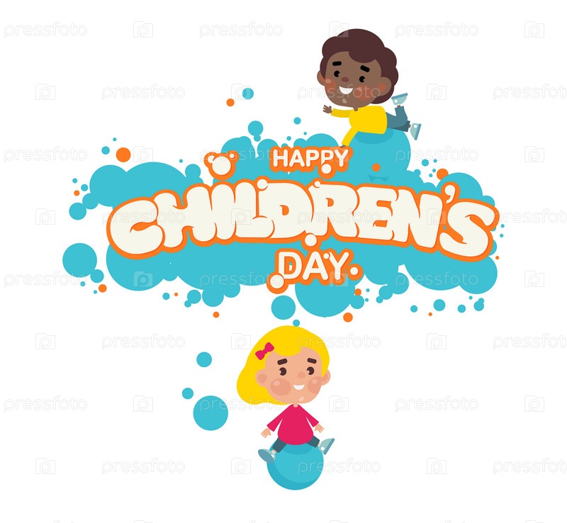 Векторная иллюстрация. С Днем защиты детей рукописные надписи. Дизайн векторной типографии Happy Children's Day для поздравительных открыток и плакатов. Празднование шаблона дизайна
