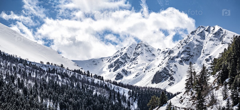 Панорамный вид на горный хребет Карачаево-Черкесской Республики в России