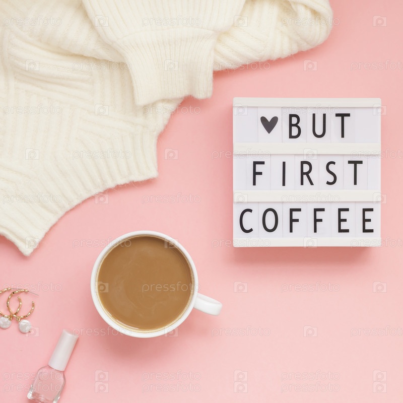 Но первый текст о кофе на лайтбоксе с чашкой кофе