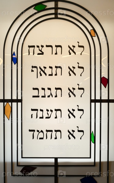Один витраж с заповедями на иврите