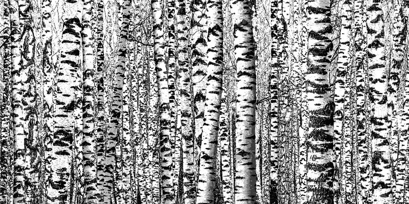 Реалистичная черно-белая стилизованная иллюстрация березовой рощи
