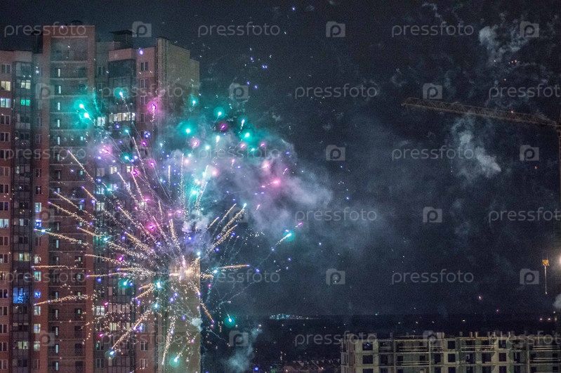 Фейерверк над городом на новый год в санкт-петербурге