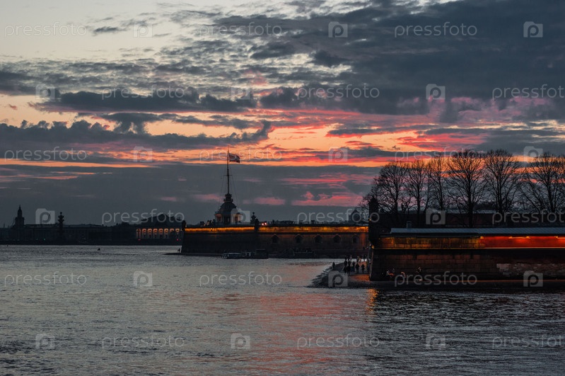 Вечерний закат над рекой и Петропавловской крепостью