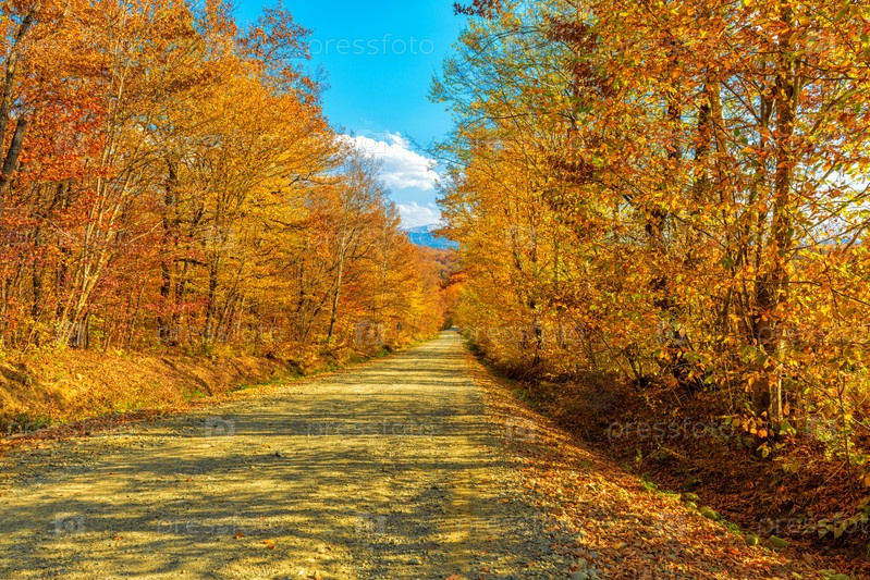 Осенний пейзаж, грунтовая дорога в лесу