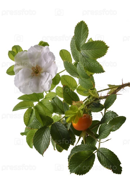 Цветок и ветка с шиповником