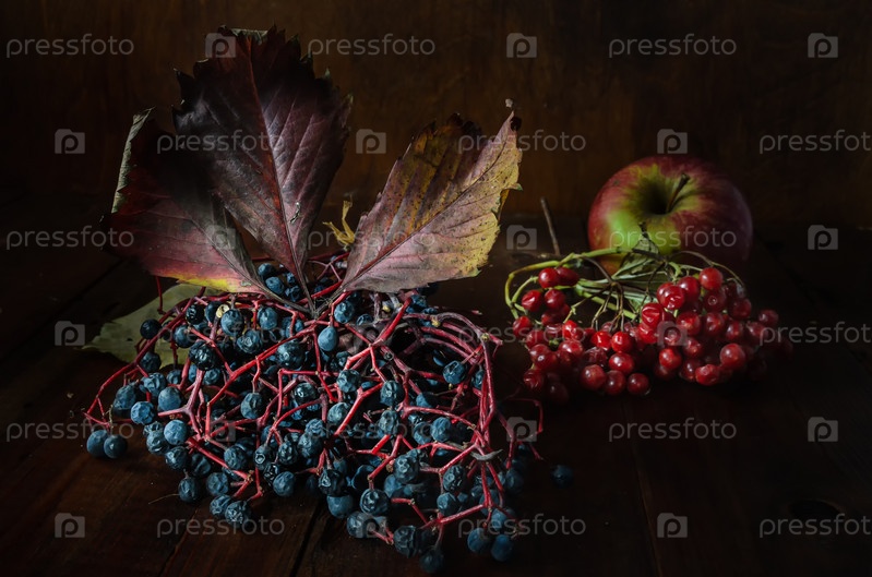 Гроздь дикого винограда и ягод калины