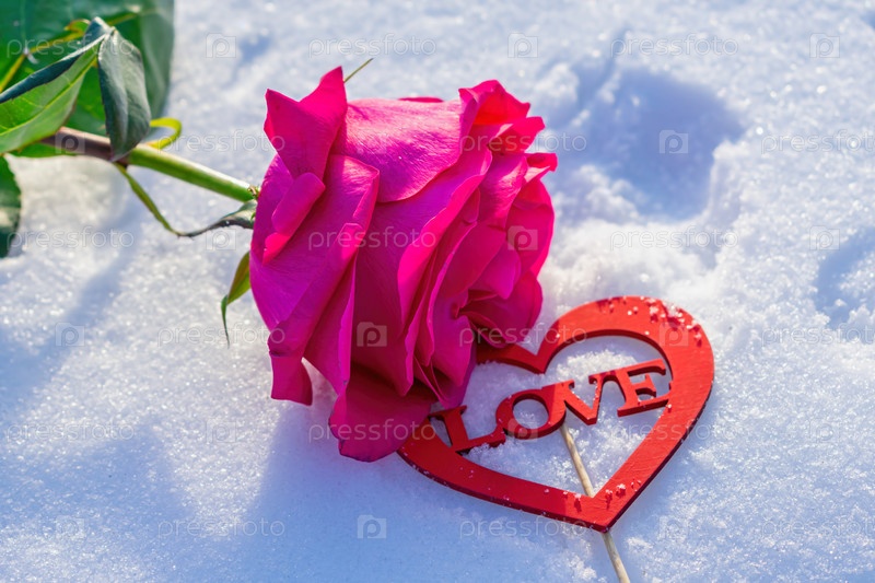 Пышная нежная роза лежит в снегу согревая чувства