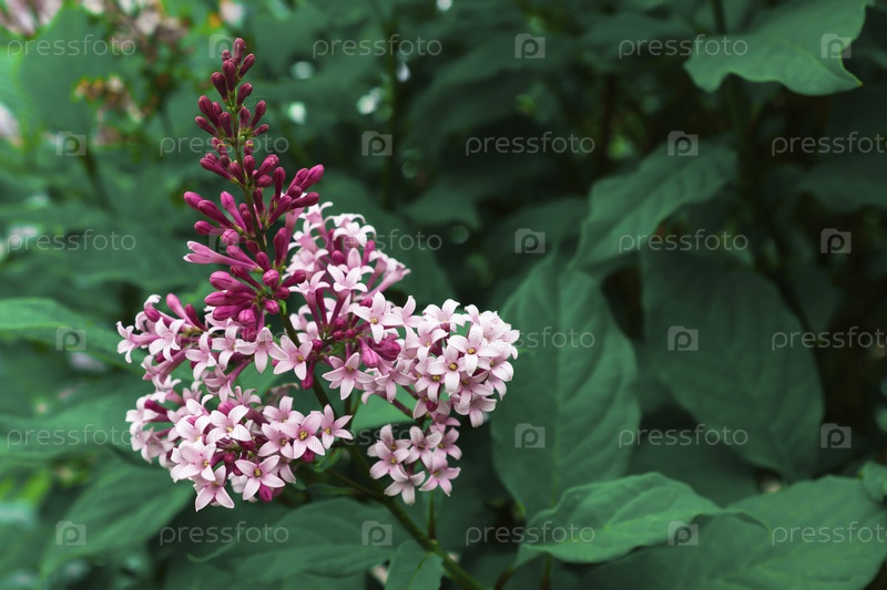Цветущая сирень в окружении зеленых кустов