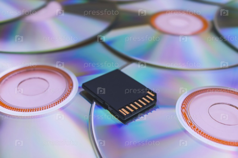 Современное хранение информации на флешке по сравнению со старыми дисками. Современная флешка лежит на старых компакт-дисках крупным планом
